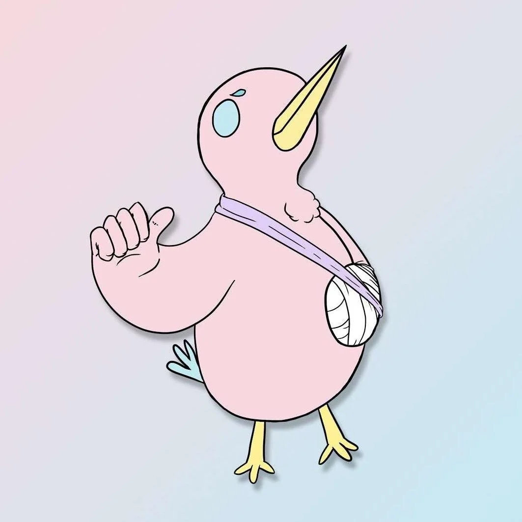 Character art and sticker design for Bronze for Birdy, an independent folk-punk band from suburban New Jersey. Embodying the group’s soft, warm soundscape and inspiring message, the character of Birdy celebrates imperfection and the ability to thrive in spite of adversity.