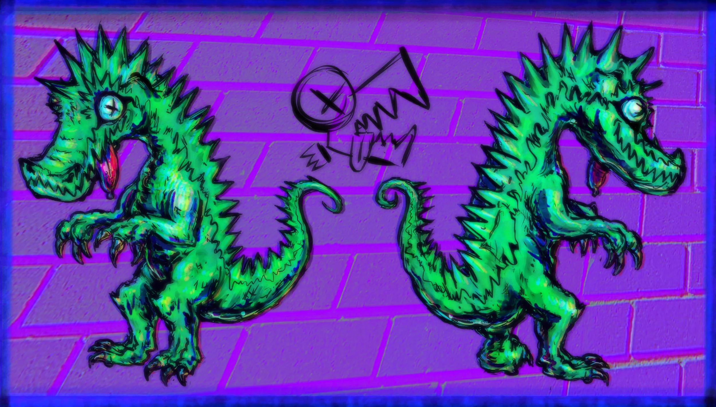 A character I designed to be part of my personal branding. A reflection of my own interests, I designed her as a punk, mutant sewer gator with a passion for street art.