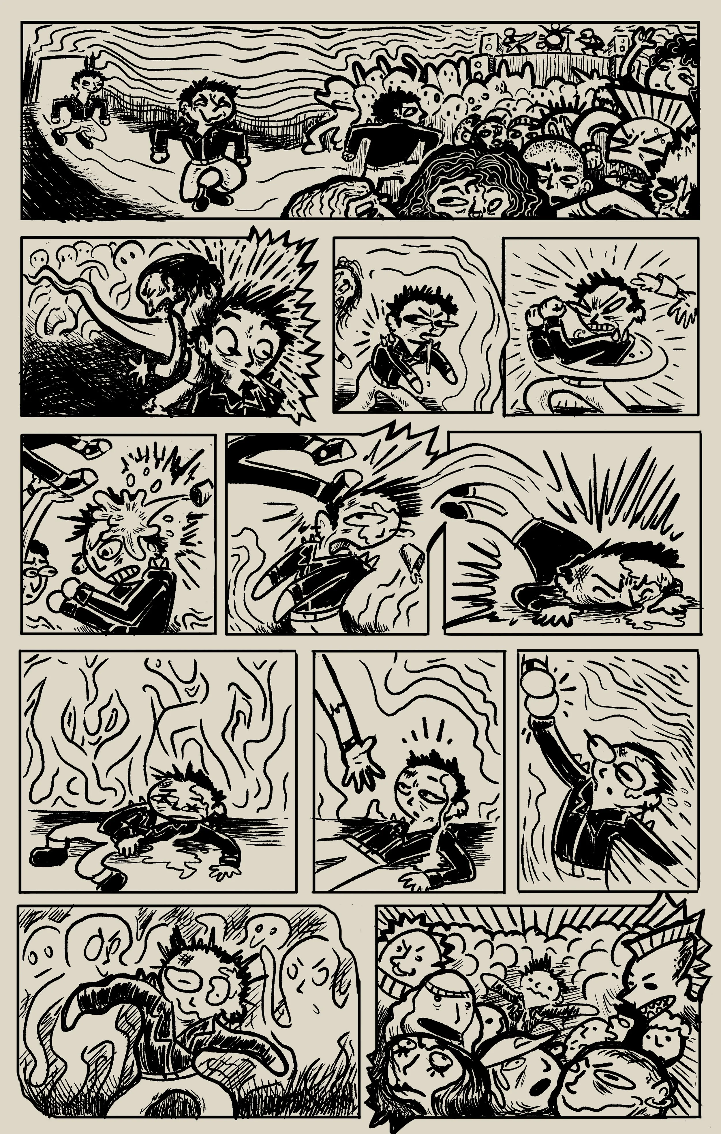 One-page comic in the style of punk zines, based on my personal experiences navigating rowdy basement shows in the local “underground” scene.